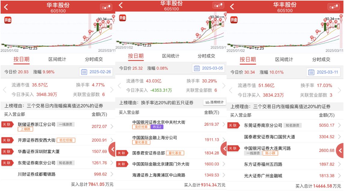 华丰股份集固态电池、数据中心电源等热门概念于一身,自然而然地受到了资金的热烈追捧。这一点从其近期龙虎榜数据就可以发现,在股价连续上涨期间,包括上塘路、陈小群等知名游资,以及量化基金等多路资金均先后买入了华丰股份的股票。