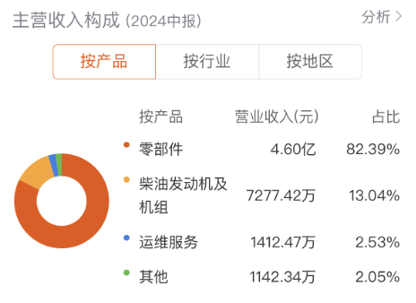 根据2024年半年报数据,去年上半年零部件业务为华丰股份带来4.60亿元收入,营收占比达到82.39%。可见,零部件业务是华丰股份的主要收入来源,主营业务的稳定是公司持续发展的基础。